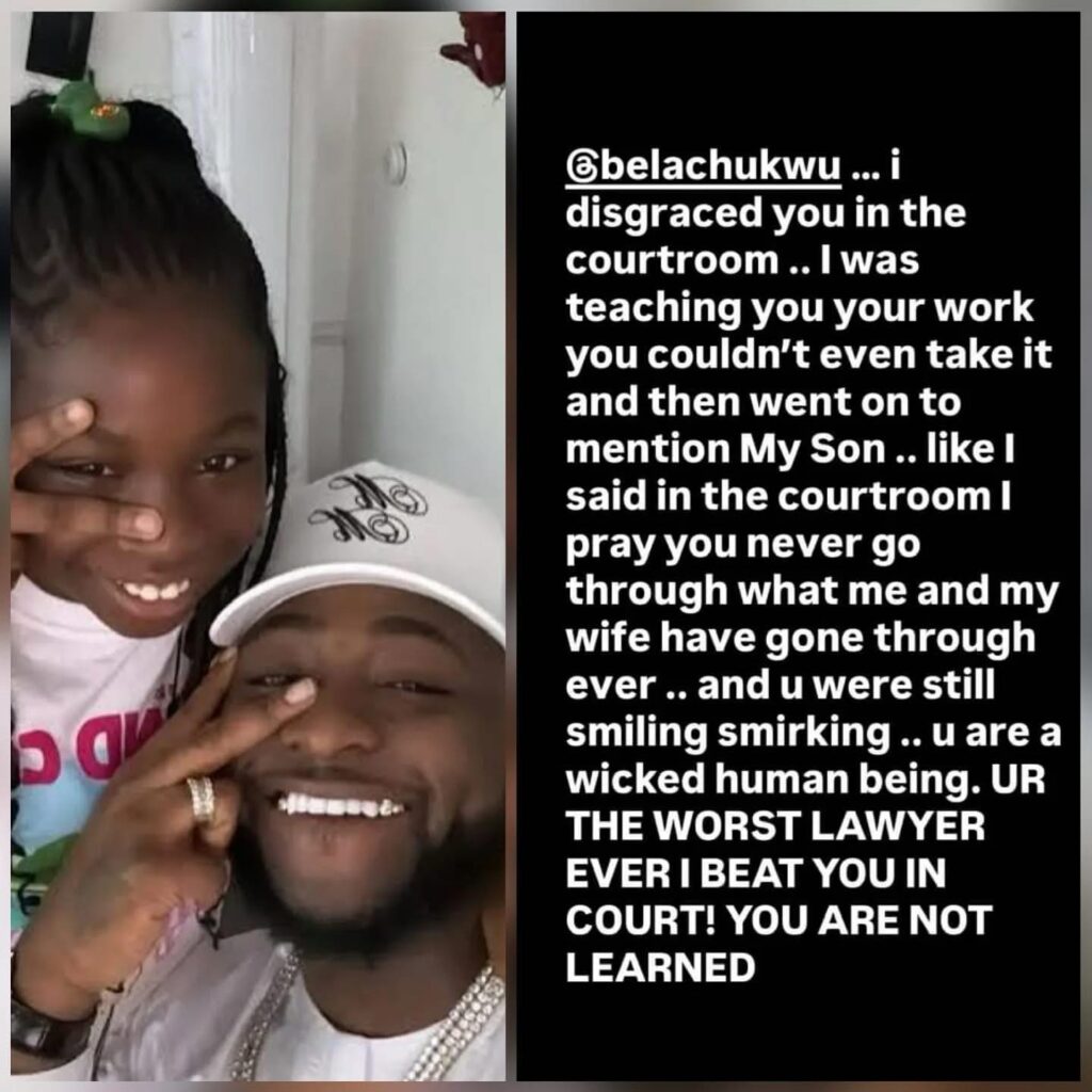 Nigerian music star Davido has publicly called out the lawyer representing his first baby mama, Sophia Momodu, following their recent court session over joint custody of their daughter, Imade Adeleke.