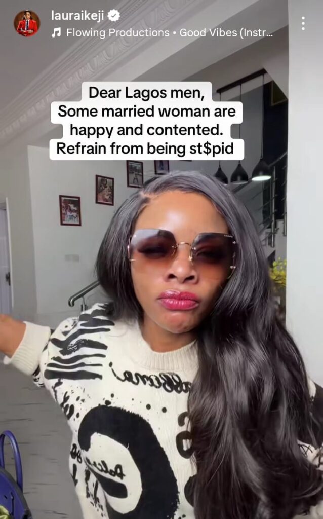 Her statement read in part, “Dear Lagos men, some married women are happy and contented. Refrain from being foolish.”