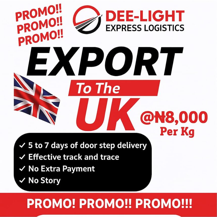Dee-Light Express Logistics handles your export process professionally, from Nigeria to the UK, USA, and Canada.